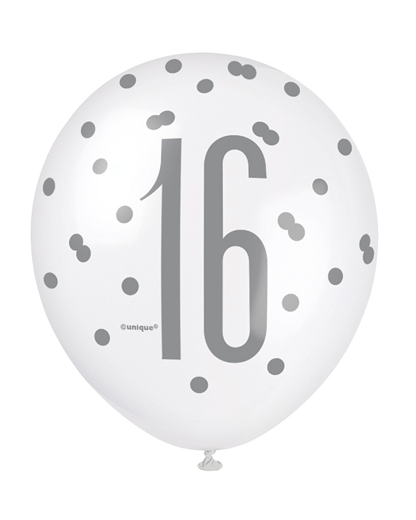 Denne pakken inneholder 6 ballonger i en vakker blå og sølv glitz-farge. Denne kombinasjonen gir en elegant og festlig touch til ethvert arrangement. Ballongene har også det populære tallet «16» trykt på dem, noe som gjør dem perfekte for bursdagsfeiringer eller jubileer.