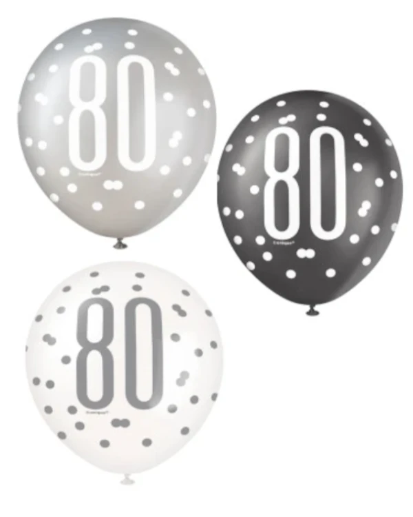 Lateksballonger (6stk): «80» – Sølv – 30cm
