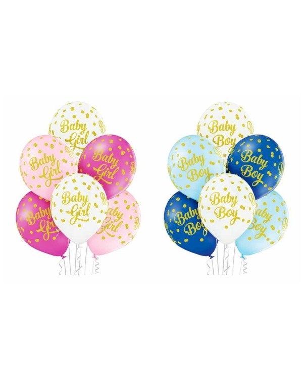 Lateksballonger (6stk): «Baby Girl / Boy» med prikker – 30cm