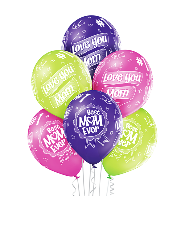 6 stk. Lateksballonger dedikert til mor med teksten «Love You Mom» og «Best Mom Ever». Ballongene kommer i pastellfargene eplegrønn, «Royal Lilac» og «Rose». Ballongene kan bli opptil 30cm store når de blåses opp. Passer perfekt til morsdag, eller bursdagen til din mor/frue med barn. Alle våre lateksballonger er nedbrytbare i naturen på lik linje med eksempelvis eikeblader.