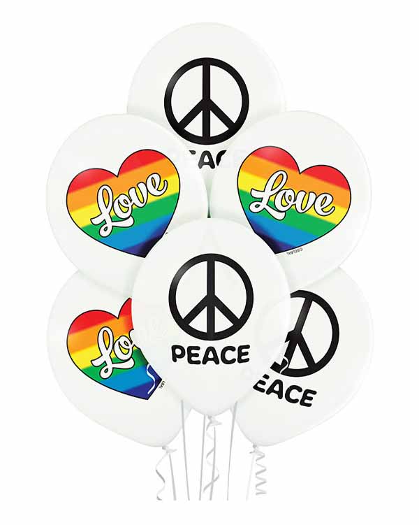 «Love & Peace» ballonger, som vil passe perfekt til en tema fest! Ballongen kan bli opptil 30cm store når den blåses opp, og passer perfekt til romantiske anledninger. Alle våre lateksballonger er nedbrytbare i naturen på lik linje med eksempelvis eikeblader.