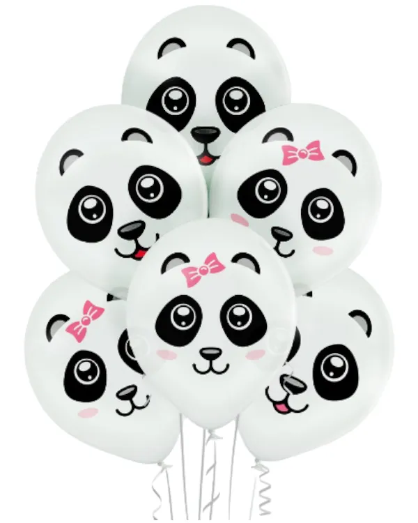 Lateksballonger (6stk): Panda med sløyfe – Svart, hvit – 30 cm