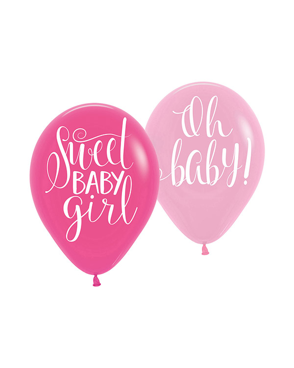 6 stk. lateksballonger i lys og mørk rosa med teksten «Sweet baby girl» og «Oh baby». Passer perfekt til ballongbuketter, dekorasjon til babyshower eller som gave til de nybakte foreldrene. Alle våre lateksballonger er nedbrytbare i naturen på lik linje med eksempelvis eikeblader. Ballongene kan bli opptil 27,5cm når de er oppblåst.