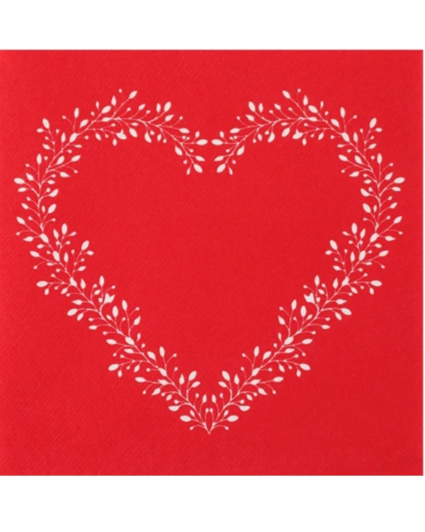 Servietter (12stk): Airlaid (føles som tekstil) med hjerte – Rød – 40cm