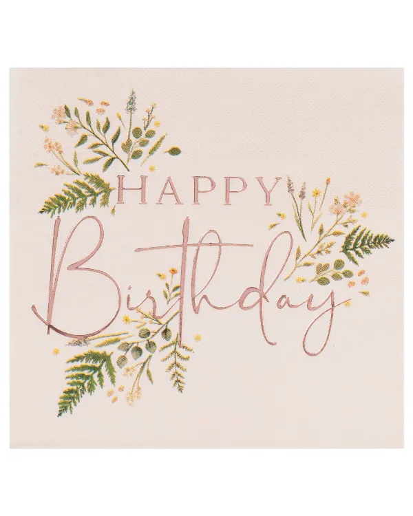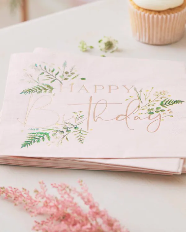 Disse serviettene er designet med et vakkert blomstermønster som vil legge til et friskt og delikat preg på ethvert bord. Den gyldne skriften gir en elegant og glamorøs følelse, og vil være et flott tillegg til enhver fest eller middagsselskap.
