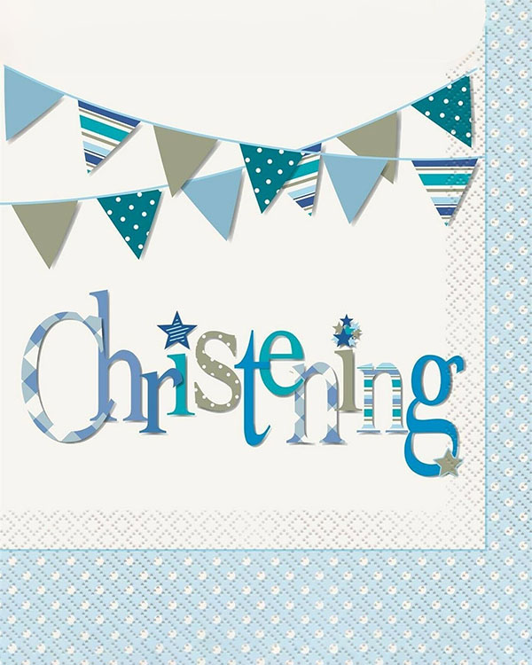 Servietter (16stk): Christening – Blå – 16.5cm
