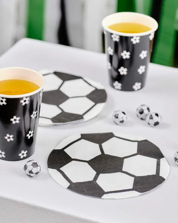 Enten det er en bursdagsfest, en fotballkampvisning eller en fotballtemafest, vil disse serviettene passe perfekt inn og sette stemningen. De er også ideelle for barnebursdager eller fotballfest på skolen.