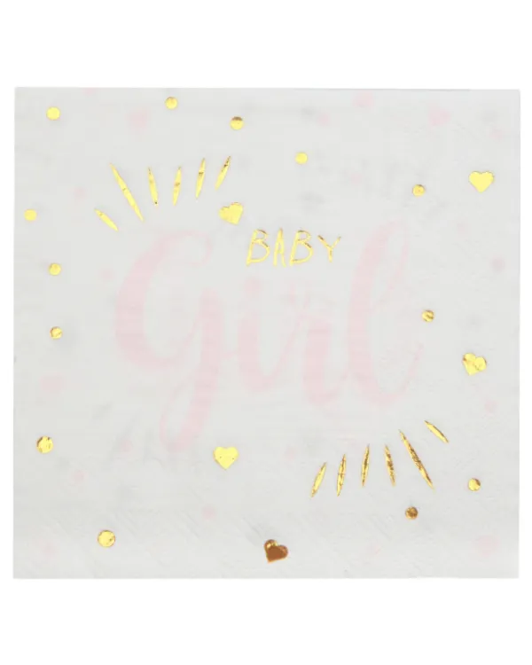 Servietter (20stk): «Baby Girl» med hjerter – Rosa – 16,5cm
