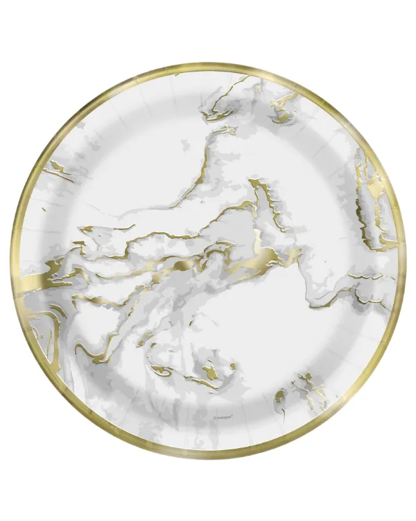 Tallerkener (10stk): Marmor – Folie – Rosa & Gull – 17,78cm